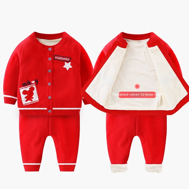 Baby Sweater Suit Girls' Fleece-lined Thickened Clothes Sweater