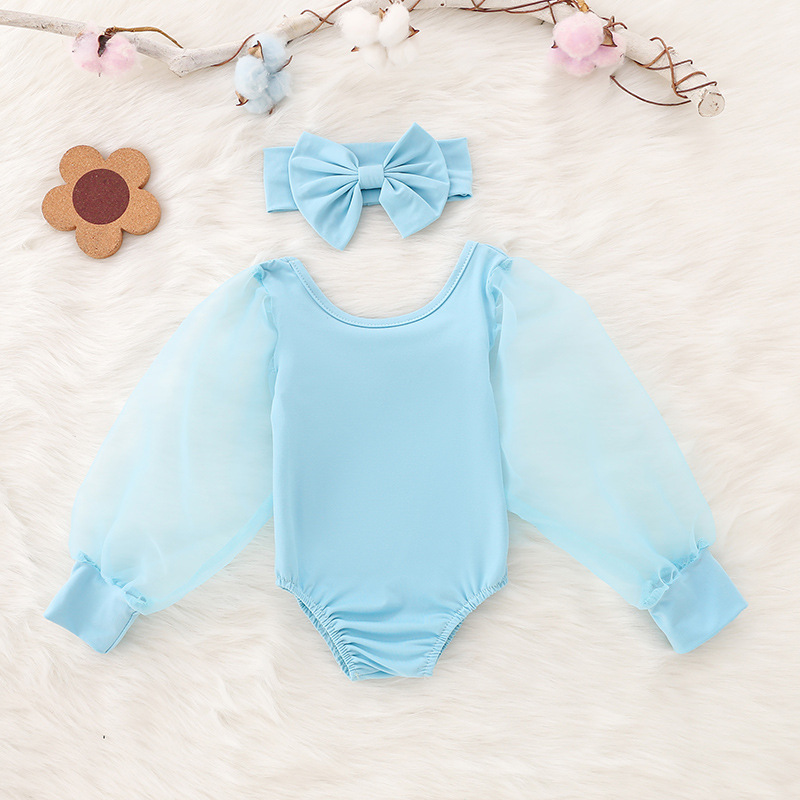 Bubble Sleeved Mesh Multi-color Swimsuit
