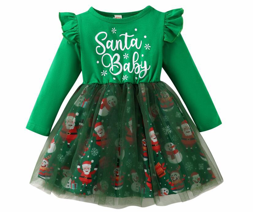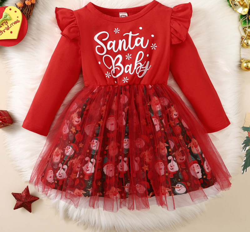 Home > Christmas Snowflake Long Sleeve Letter Mesh Fluffy Stitching Dress