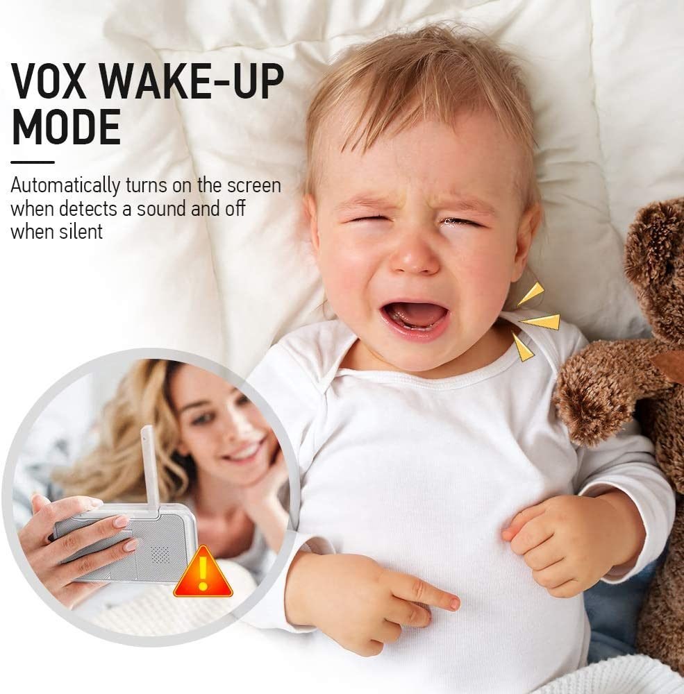2.VOX Function --The Monitor will sleep automatically to save power. Once the baby monitor detects your baby’s voice, the warning lights will be on and the screen will be activated. It extends the working time by this smart low-consumption technology.