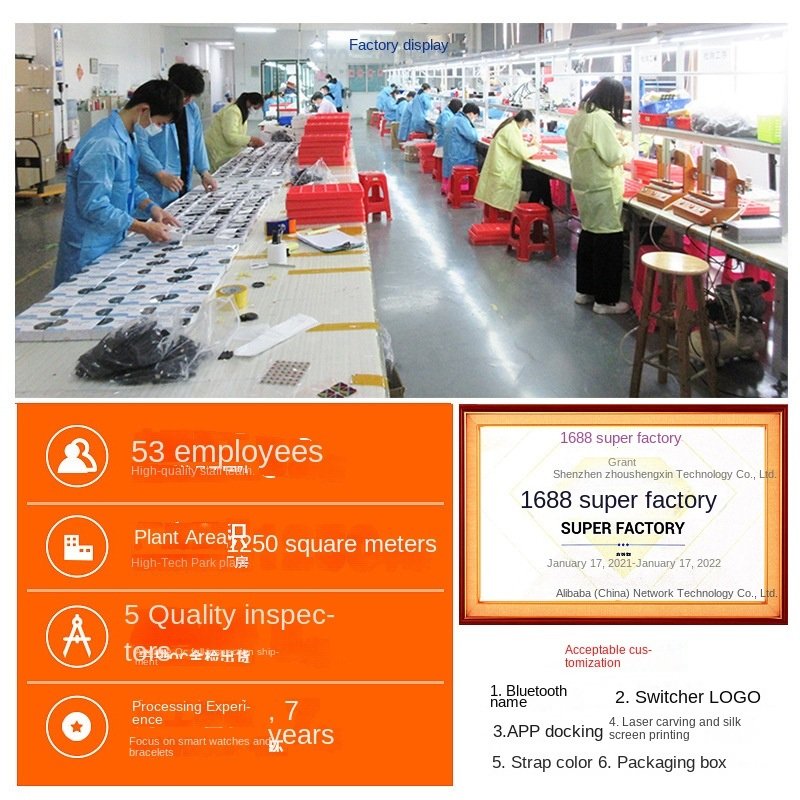 function:Step counting; heart rate monitoring; blood pressure measurement; Bluetooth call; intelligent reminder; remote self timer; sleep monitoring; blood oxygen detection; information push;