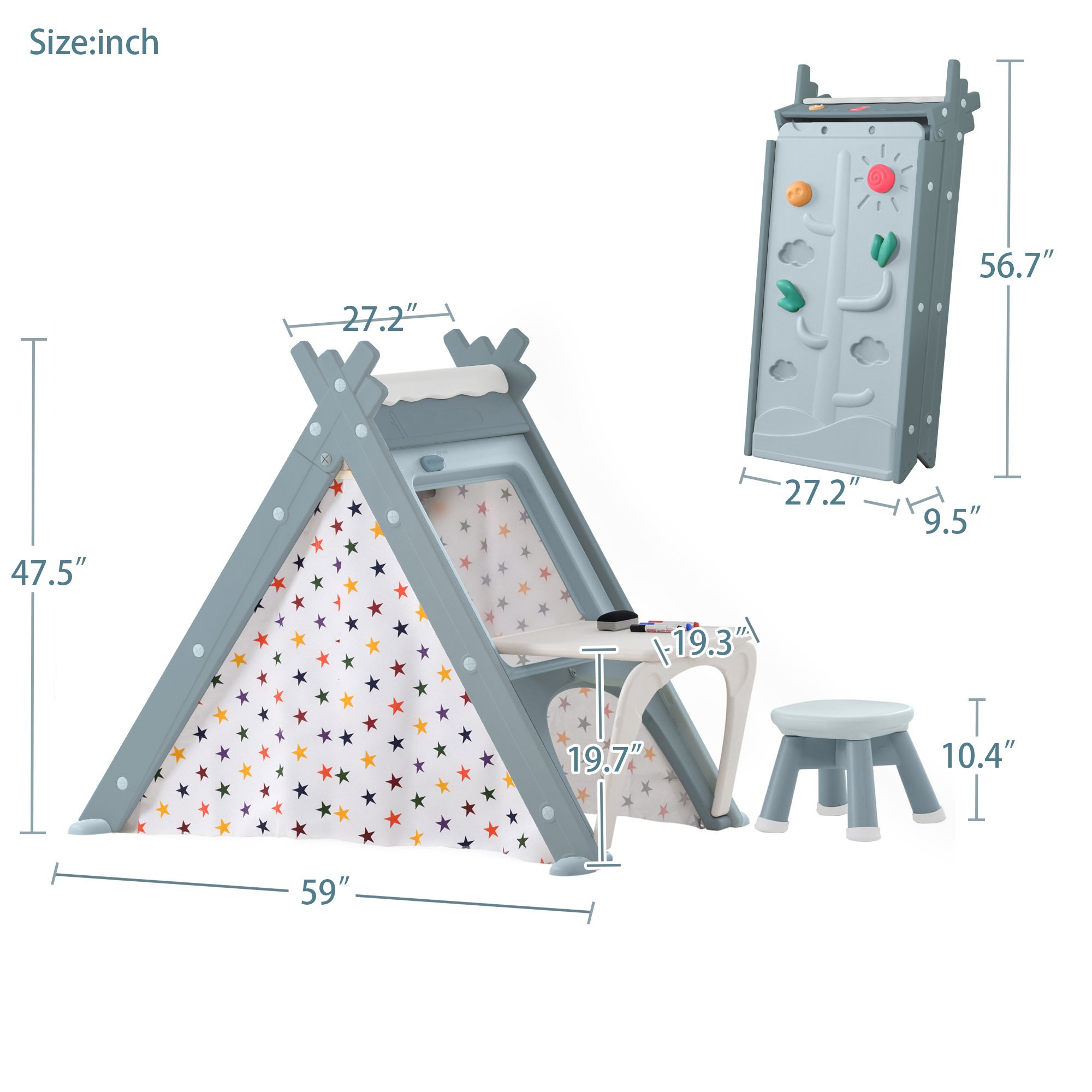 Kids Play Tent - 4 in 1 Teepee Tent with Stool and Climber, Foldable Playhouse Tent for Boys & Girls