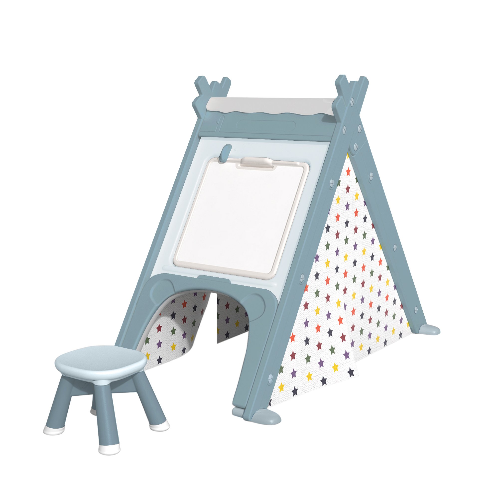 [4 in 1 Play Tent] This multifunctional kids' play tent has 4 game options: playhouse, climber, game table, and whiteboard. This combination allows children to play freely in it, what's more, helps develop children's creativity, artistic sense, physical coordination, and social skills.