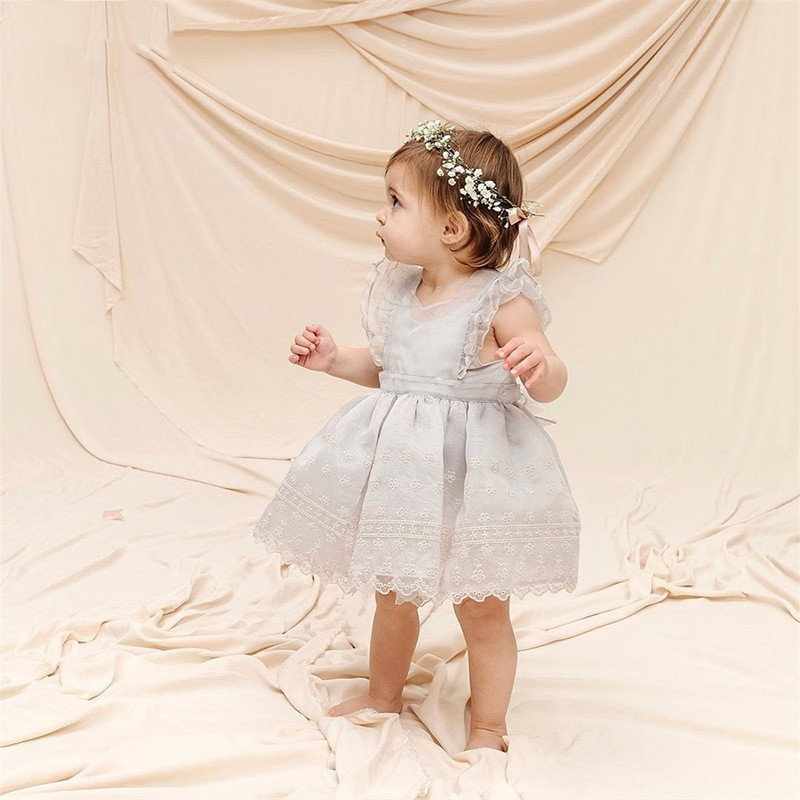 Lace Lace Yarn Yarn Vest Dress Solid Color