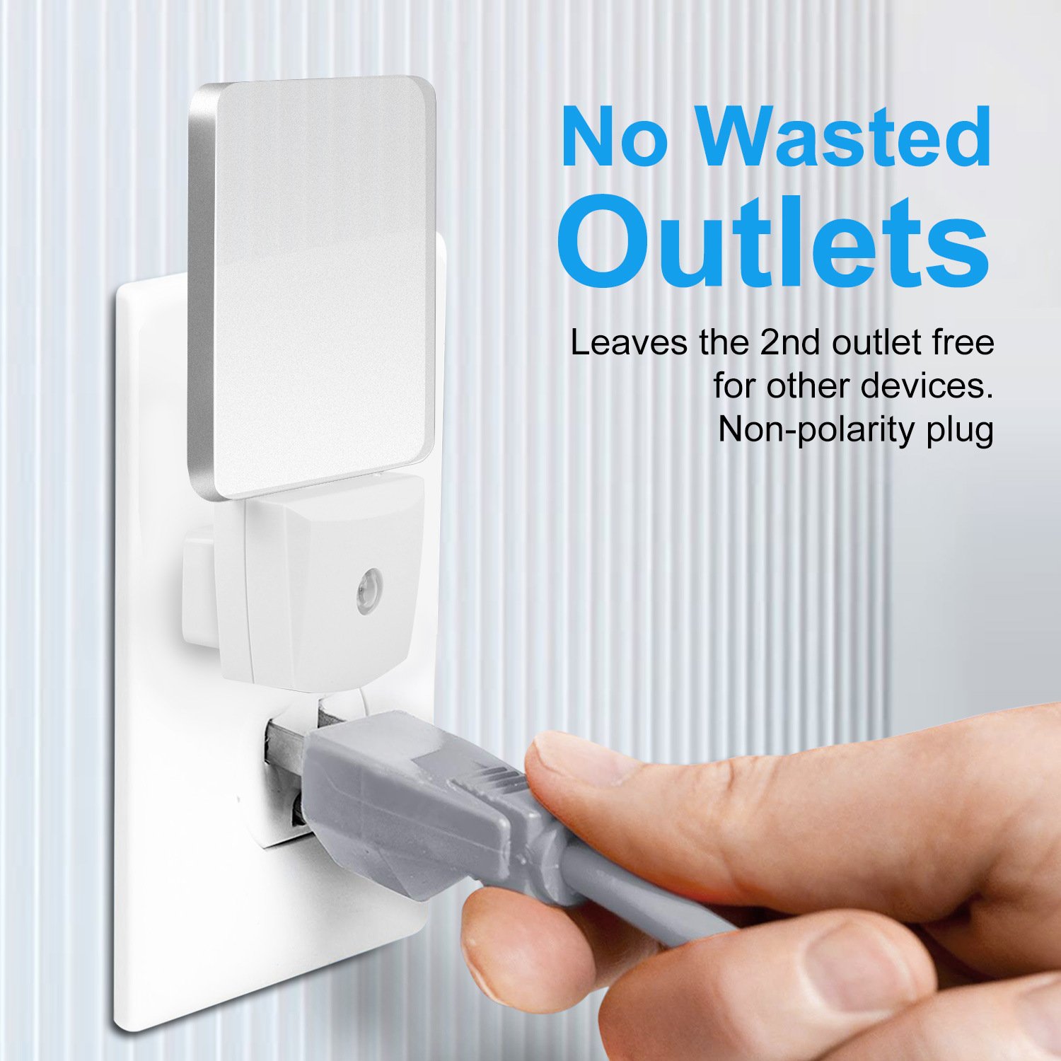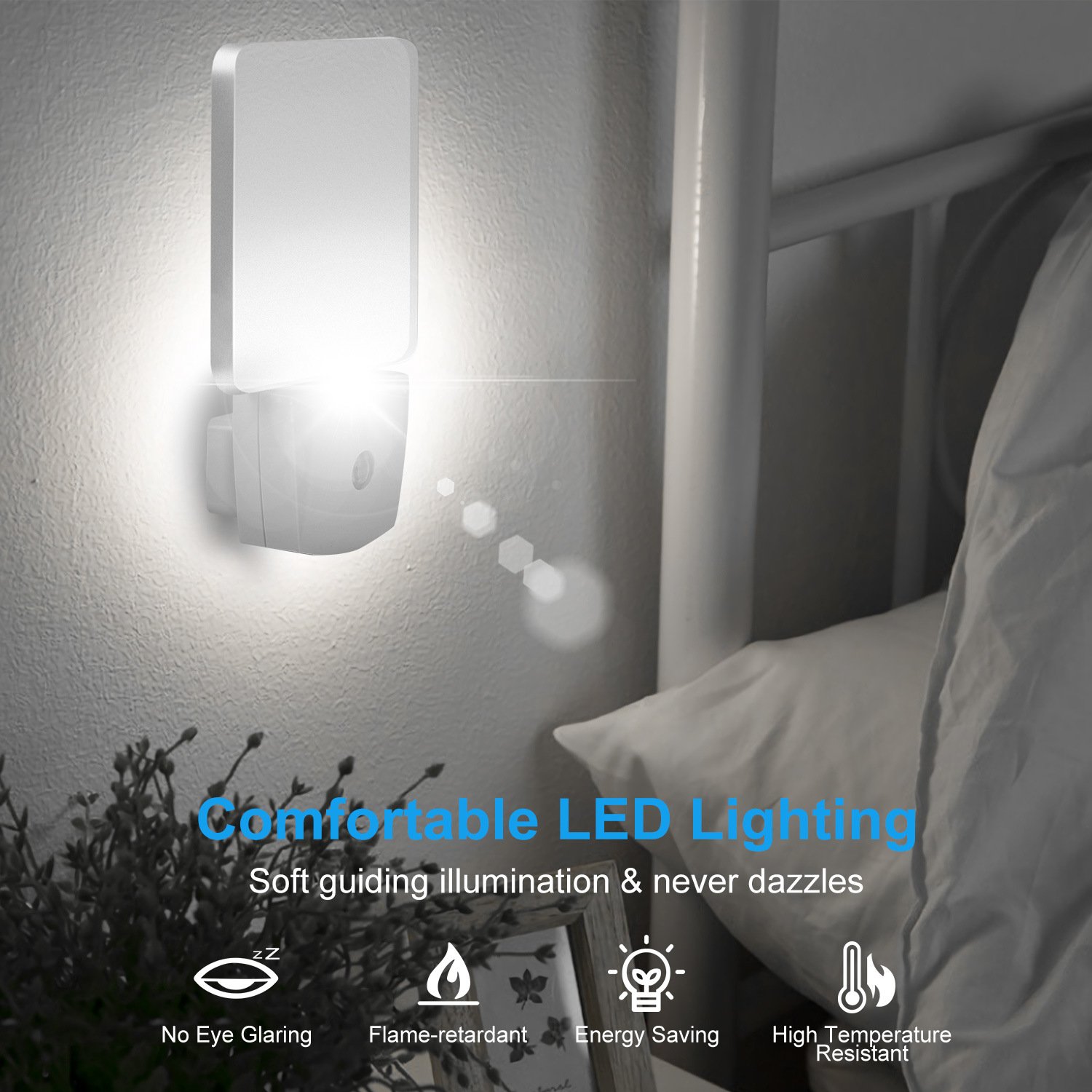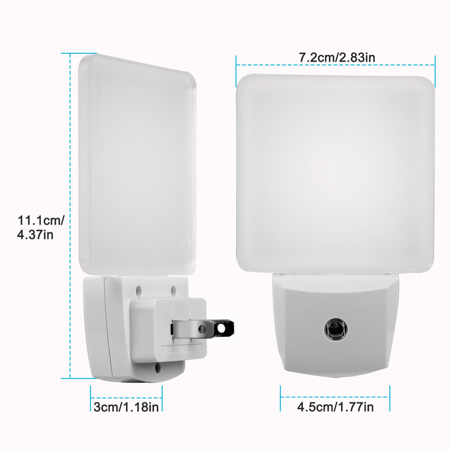 **AUTO ON/OFF*:With smart dusk to dawn sensor,our night light will auto turns on at night or when ambient lighting becomes insufficient and auto off during daytime. No need to repeat pressing the main lights.