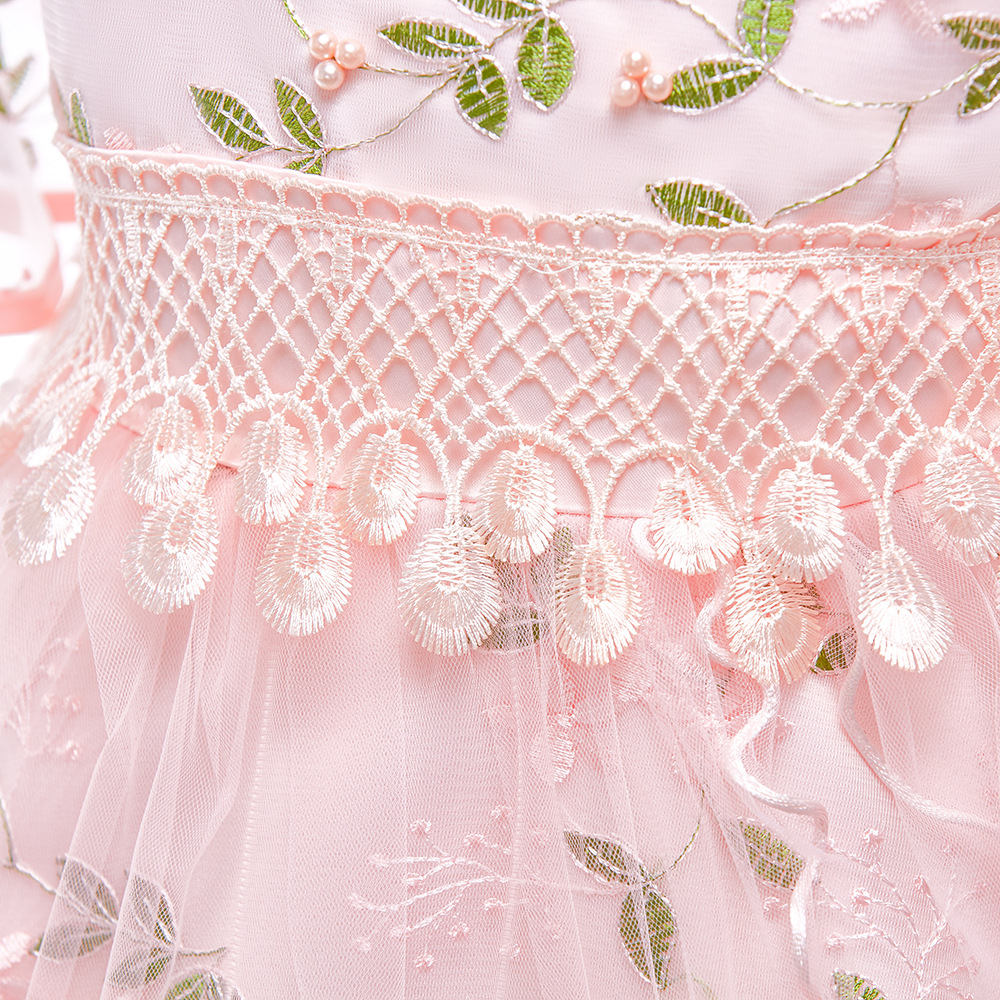 Home > Women's Fashionable Embroidered Flower Mesh Bell Sleeve Princess Dress